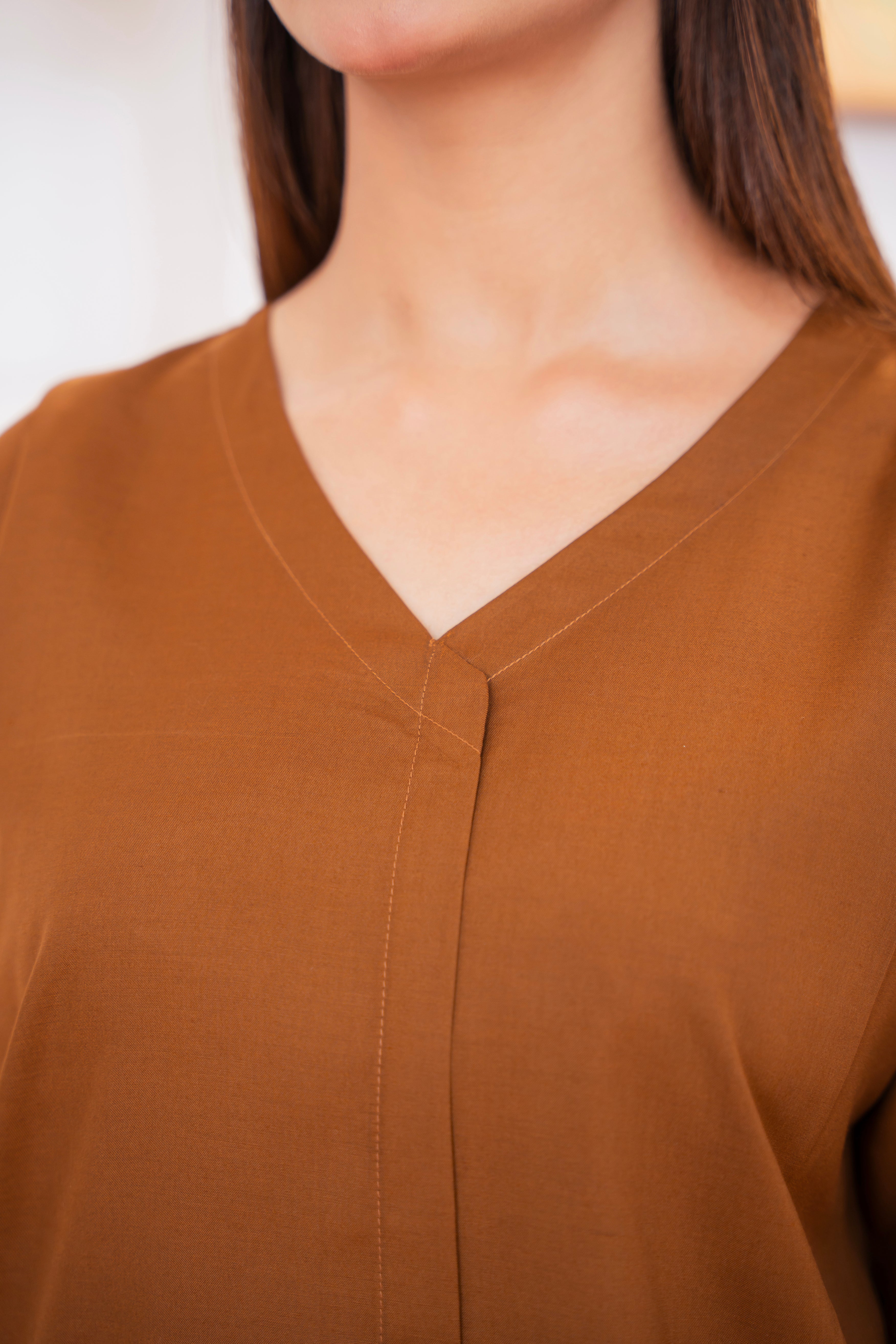 This two-piece dress includes a stylish shirt and tailored trouser. This dress is crafted from our new soft crepe fabric, known for its sweat-absorbing properties, ensuring comfort throughout the day. Designed to blend contemporary Western styles with subtle traditional touches. The dress is shown here in size small, perfectly fitted on the model. Length of Shirt, Sleeve Opening & Shirttail are as per Design. Actual color may vary slightly from what appears on your screen due to lighting.
