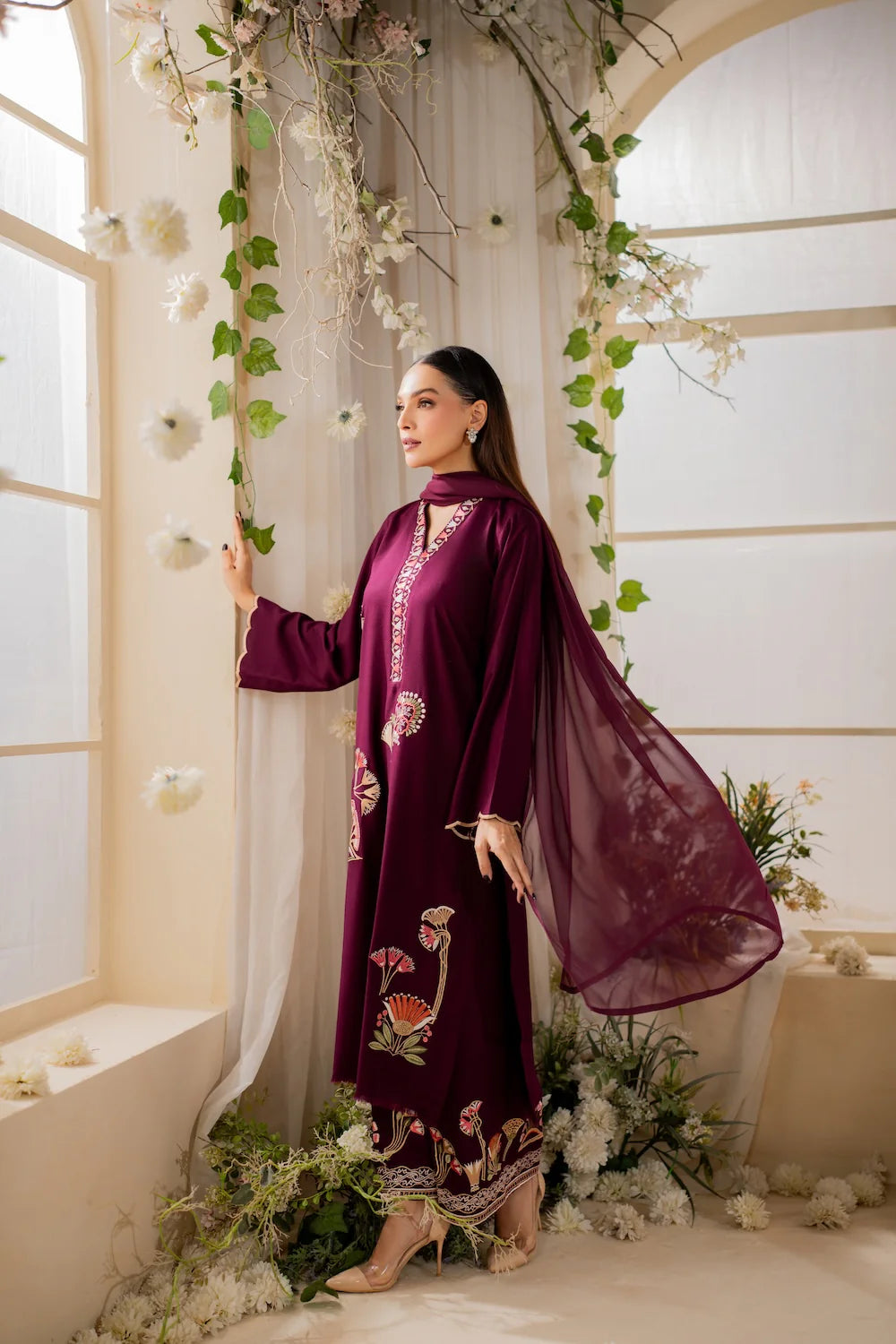 ✔ Design: A 3-piece set (Dupta + kurta + trousers/shalwar) with a tailored fit and contemporary silhouette.
