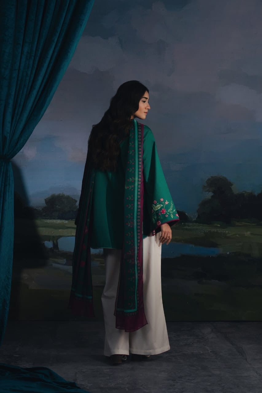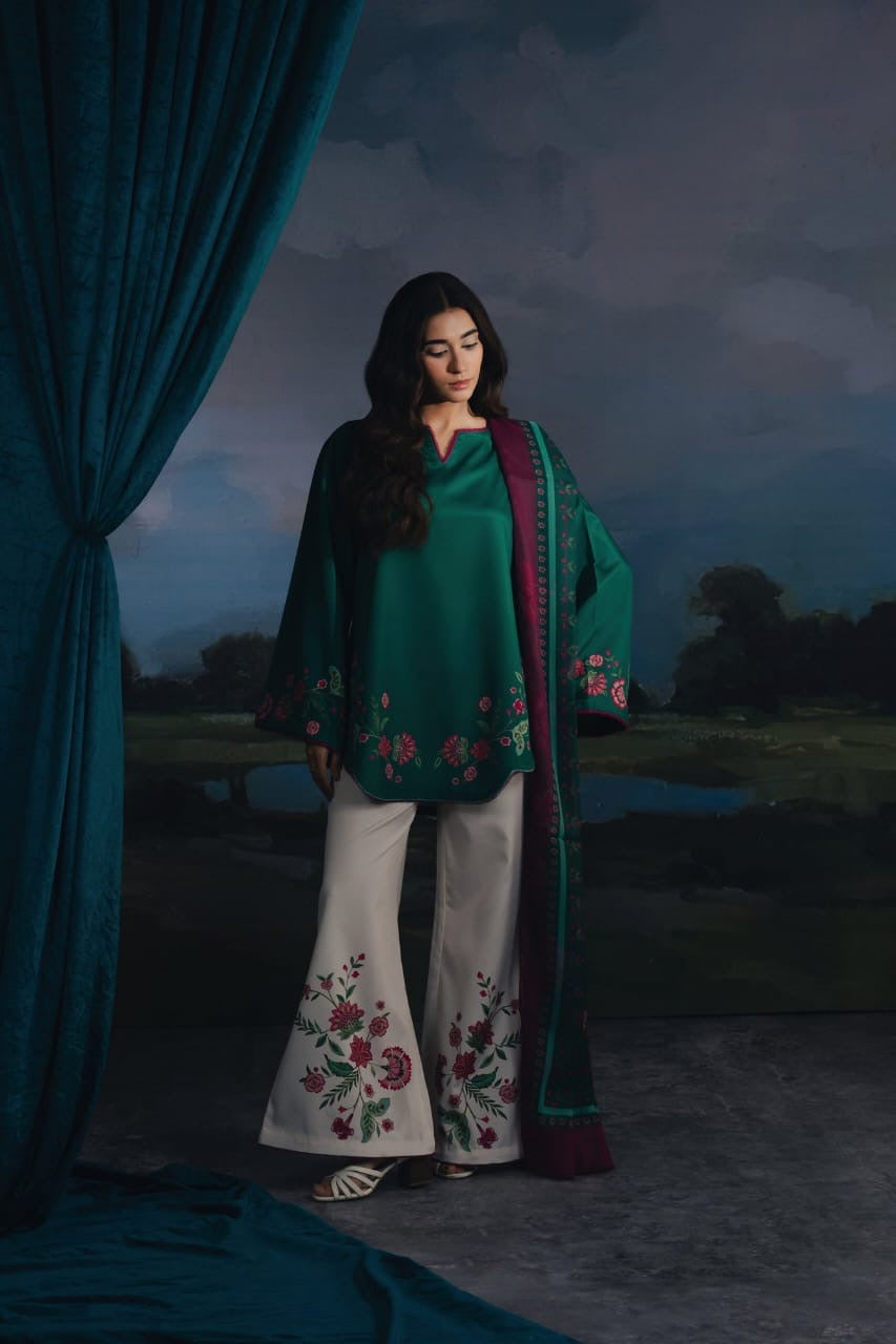 ✔ Design: A 3-piece set (kurta +dupatta + straight-trousers/shalwar) with a modern, relaxed fit.