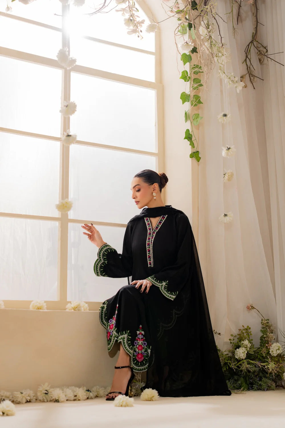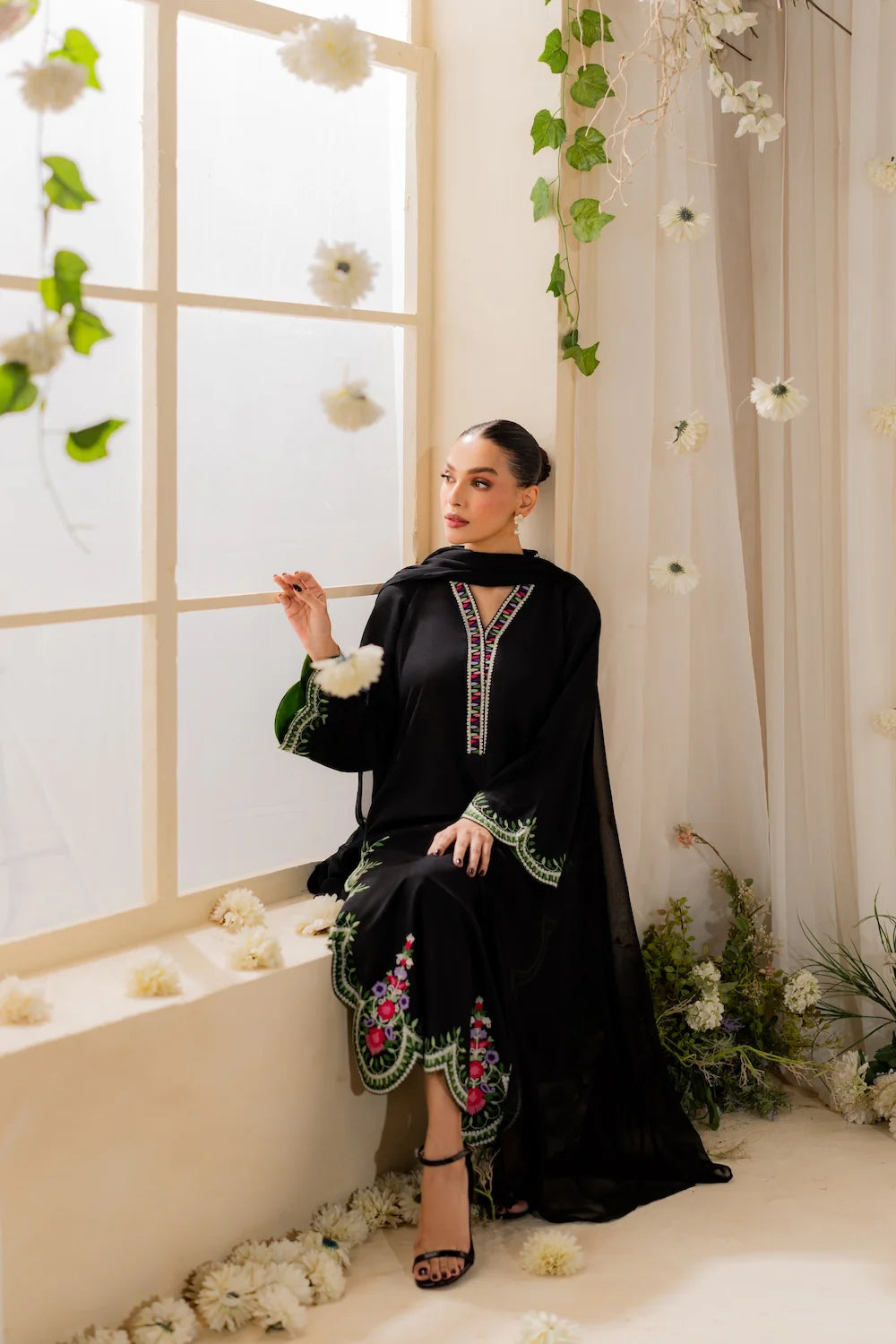 ✔ Design: A 3-piece set (Dupta + kurta + trousers/shalwar) with a tailored fit and contemporary silhouette.