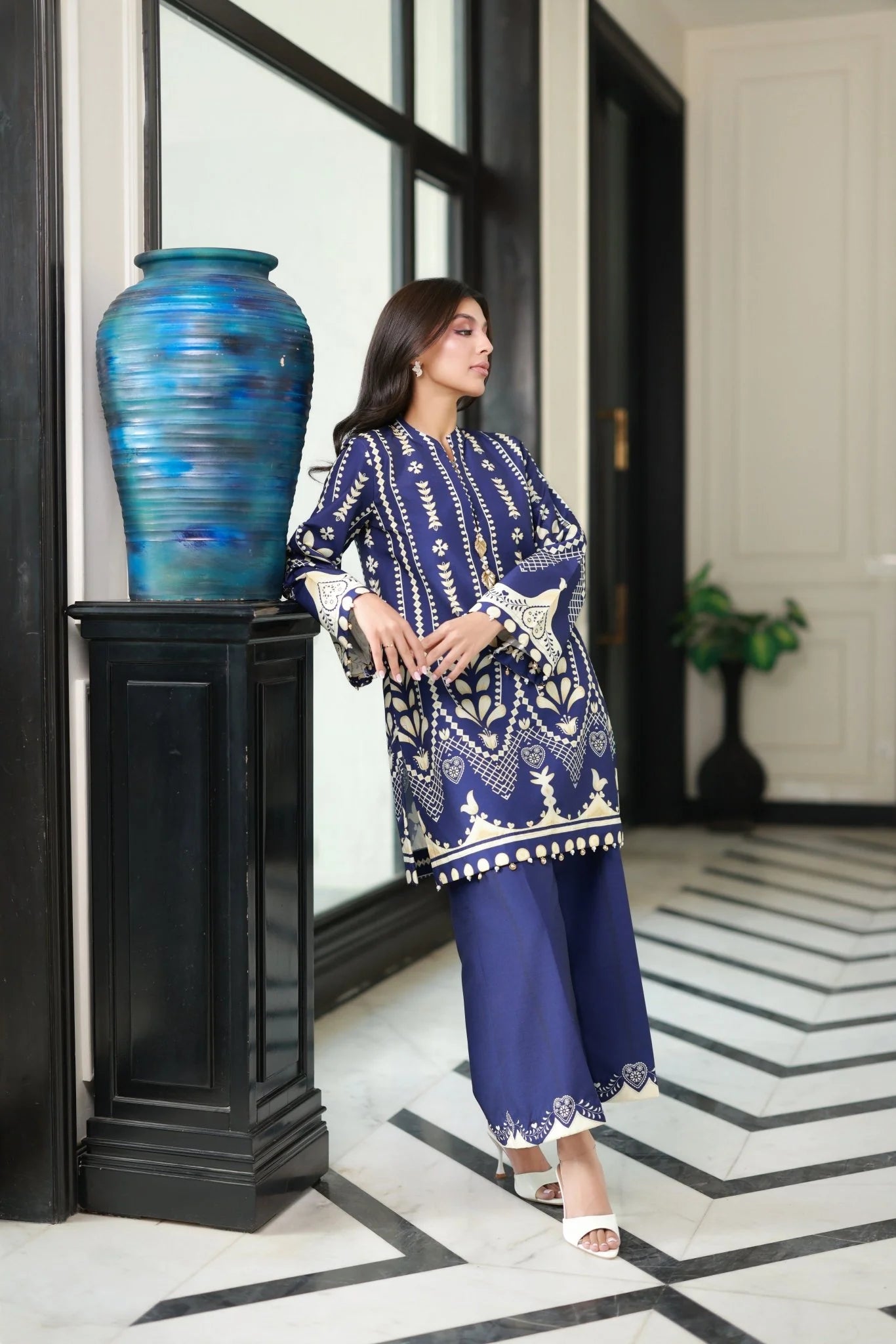 ✔ Design: A 2-piece set (kurta + straight-trousers/shalwar) with a modern, relaxed fit.