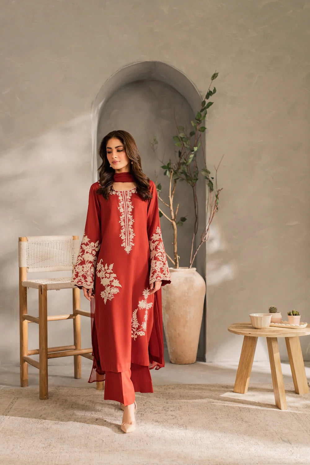 ✔ Design: A 3-piece set (Dupta + kurta + trousers/shalwar) with a tailored fit and contemporary silhouette.