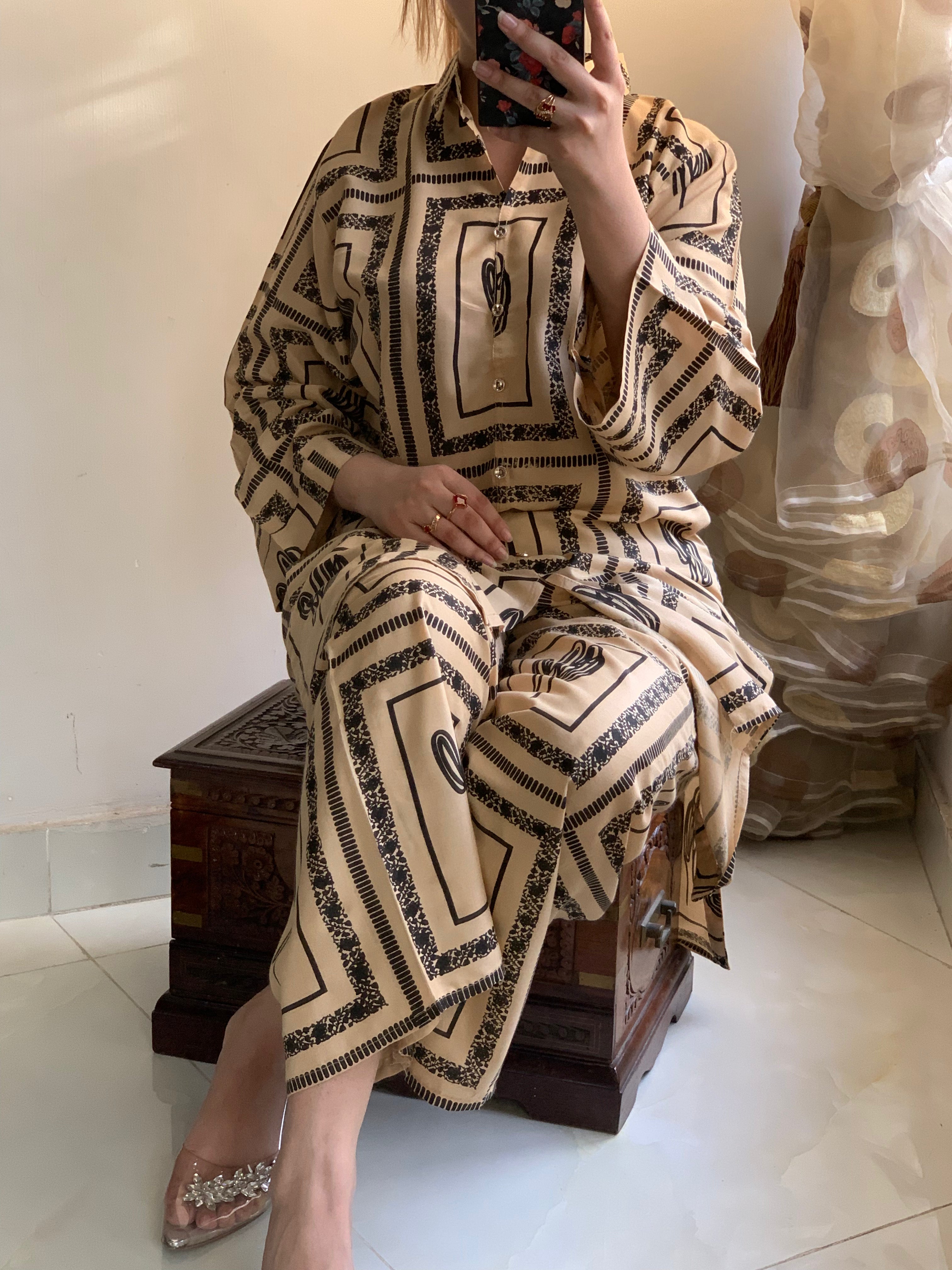 Block Print Premium Stone Linen Stitched 2 Piece Suit